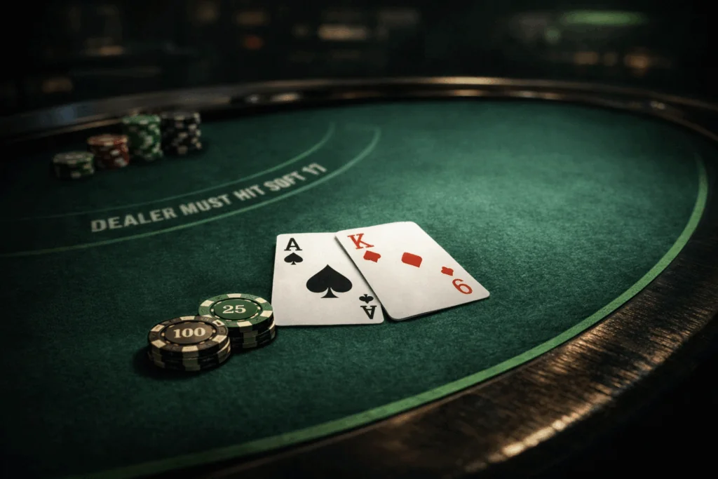 - Soft hand: contains an Ace counted as 11 (e.g., A+6 = soft 17).