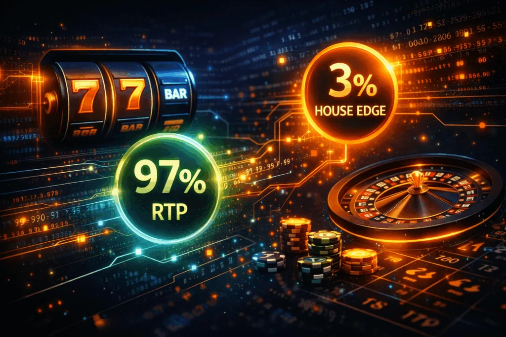 - RTP (Return to Player): The theoretical percentage returned to players over many bets (RTP = 100% − house edge, roughly).
