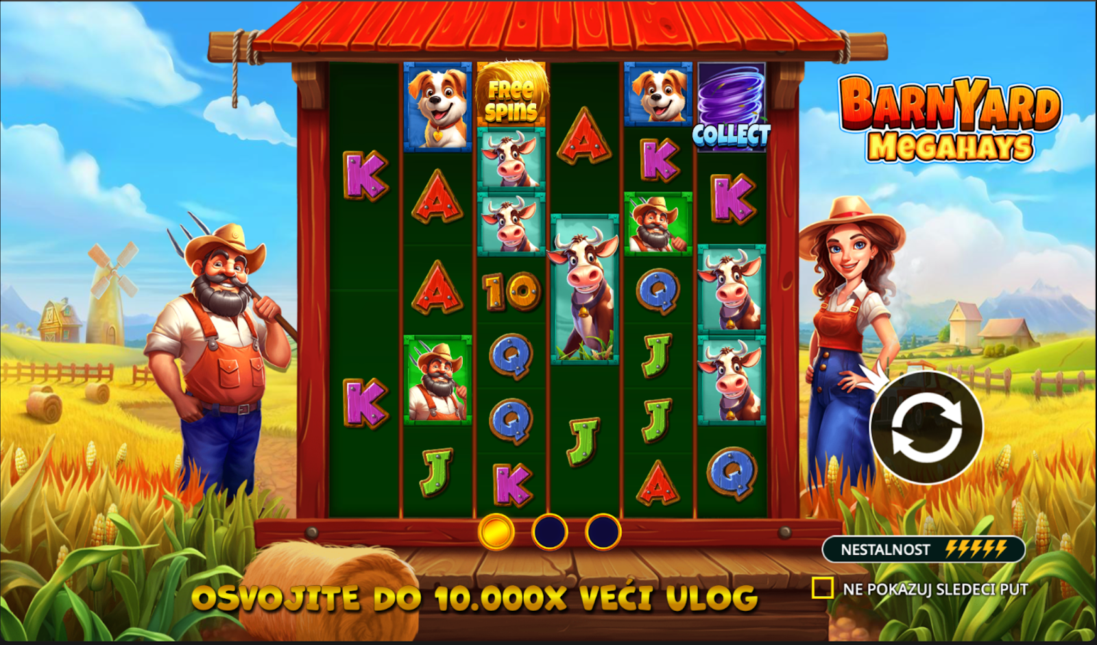 At first glance, Barnyard Megahays Megaways presents a fairy-tale farm setting: golden cornfields, cheerful farmers, and friendly farm animals ready to bring winnings. Beneath this bright and sunny countryside atmosphere lies a powerful Megaways engine with up to 117,649 ways to win, combined with an innovative Collect mechanic.