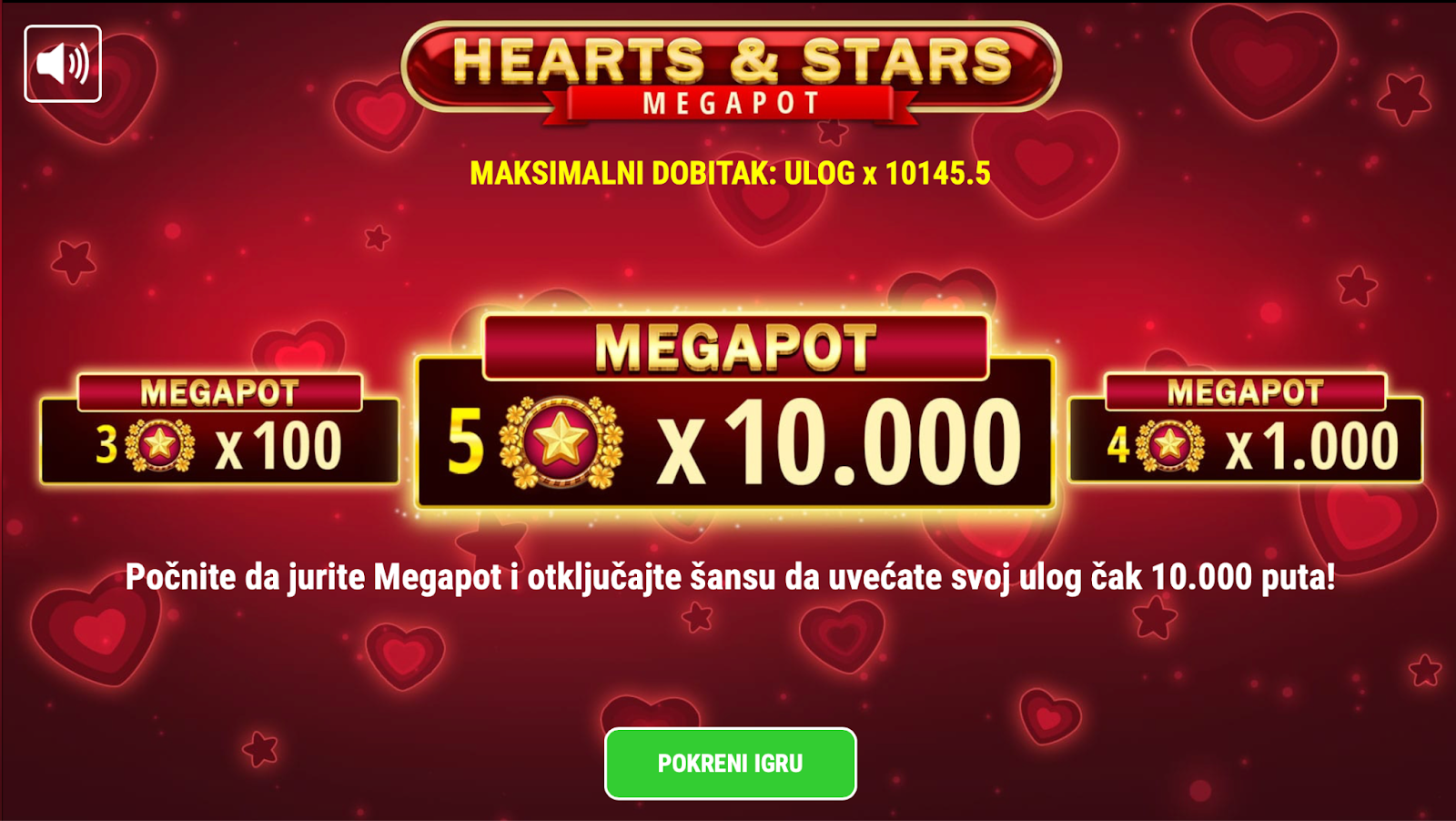 The RTP is not displayed directly in the game, which may be a drawback for players who prefer maximum transparency. However, testing and available information suggest an average RTP between 95% and 96%. What is clearly confirmed is high volatility. Wins may come less often, but when they land, they can be substantial — perfectly in line with the Megapot system. Maximum payouts can reach an impressive 10,145x per spin. For those who prefer to test before committing, Hearts & Stars free modes and demo versions are the best starting point.