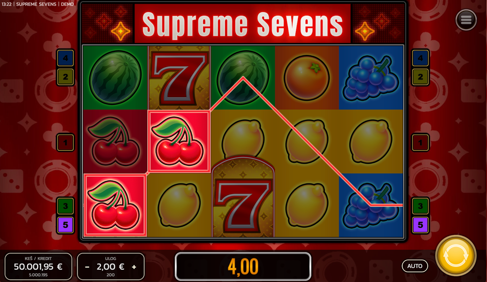 At first glance, Supreme Sevens looks like a familiar classic. Five reels, three rows, and five paylines — a layout that experienced players instantly recognize. For those new to online slots, this game serves as a clear example of traditional slot mechanics.